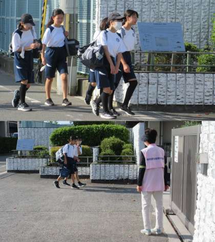 登校の様子2 公開日 2023/09/19 更新日 2023/09/19 学校紹介 「今日は晴れ。予想最高気温は31.7度です。」東区天気予報より。 今日も真夏日になる予報です。熱中症対策。こまめな水分補給をお願いします。