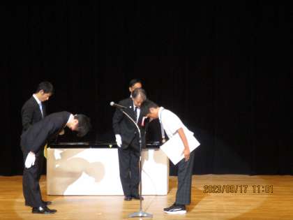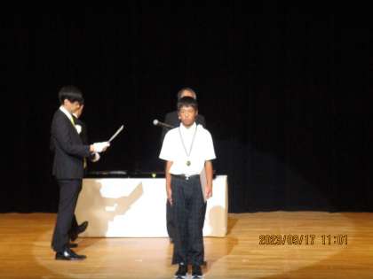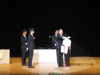 本校からは、1年生の島田さんが「大和川の源流発見水質調査」で、2年生の愛原さんが「本当によく回るコマの実験と研究(回転数を調べよう)」で優秀賞を受賞しました。