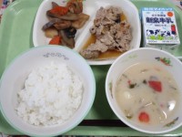 本日11月8日(水)はごはん・じゃがいものそぼろ煮・さばのごまみそ煮・小松菜とエリンギのソテー・卯の花でした。