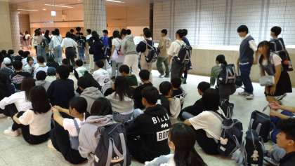 東京駅に到着。駅内を移動し班別活動の確認をします。
