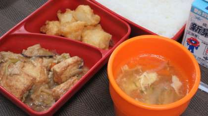 本日10月7日(月)はごはん・厚揚げとキャベツのみそ炒め・長崎天ぷら・タンホータンでした。