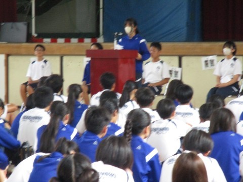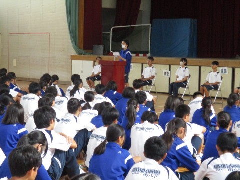 校長先生や生徒指導の先生からは、夏休みの過ごし方などについてお話をききました。安全や健康に注意しながら、みなさんがそれぞれ何かに全力で取り組める夏休みにできるといいですね。