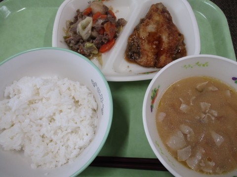 明日10月15日(水)は、ごはん・牛乳・いわしのかば焼風・いも煮・豚汁です。