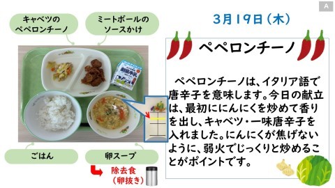 明日3月19日(木)は給食最終日です。
