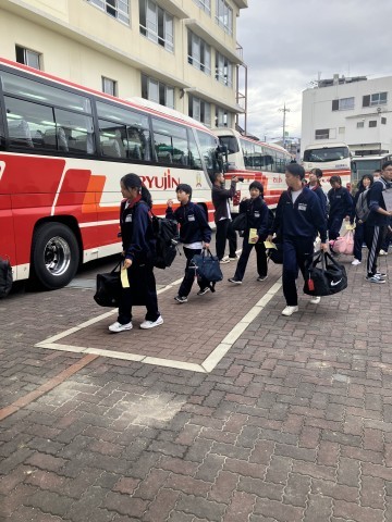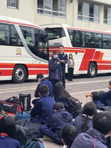 宿泊学習出発式を行いました。無事バスが出発しまし、これから桂川PAに向かいます。