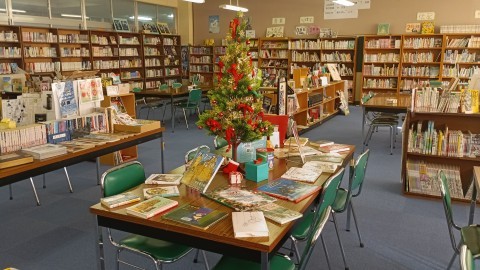 図書館ではクリスマスツリーと共にクリスマス関連の本を展示しています。