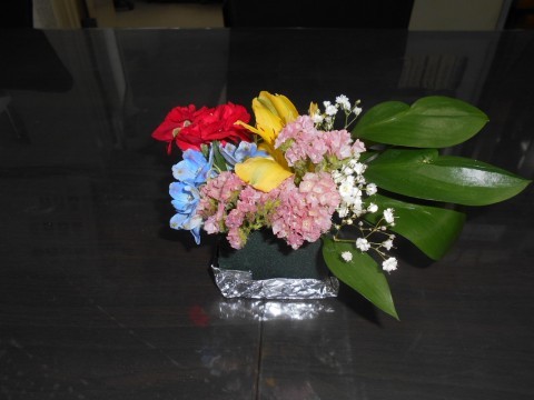 放課後,茶華道部のメンバーが校長室に作品を持参してくれました。お花の先生も来てくださって指導していただきました。とてもきれいな作品で,しっかりお水を差して,長く楽しませてもらおうと思います。メンバーの皆さん,ありがとう!