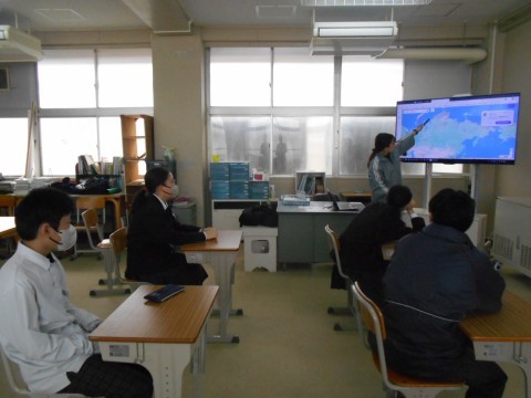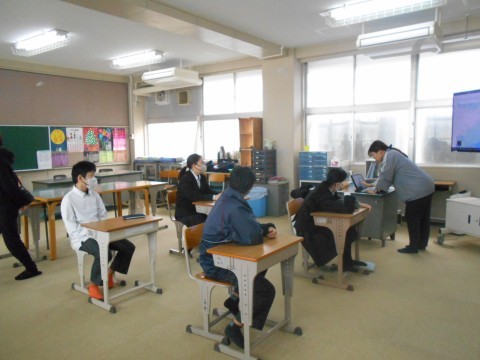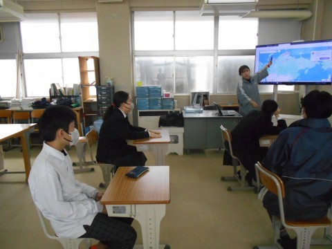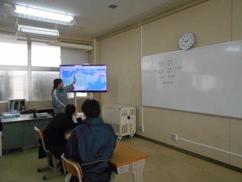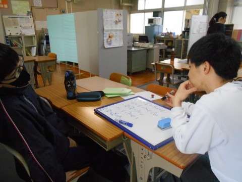 そよ風学級です。社会科の先生が,世界地図を使っての授業を行っています。また,自身の課題にも積極的に取り組んでいました。