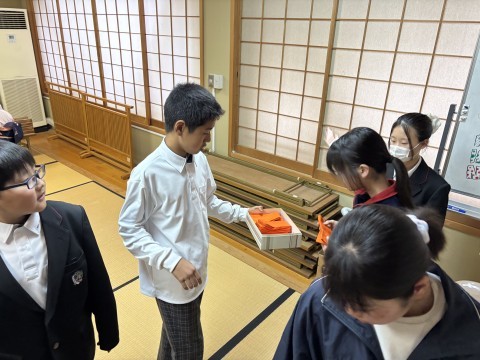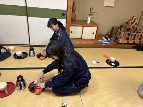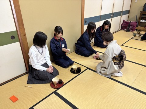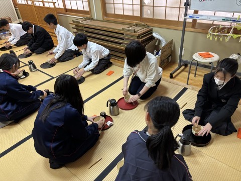 特に1年生にとっては初めての茶道体験となり、二人の先生からお作法を一から丁寧に教えていただきました。