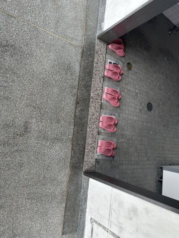 いつも通りの,82期生名物1分前の静寂の廊下。今日は,トイレのスリッパもきれいに並んでありました。