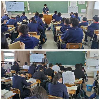 全学年火曜日の4校時は、特別の授業「道徳」が行われています。今日は、初回でファイル配布やネームカード作成、評価に関する説明などがありました。今後の授業では「自分に関すること」「人とのかかわりに関すること」「集団や社会とのかかわりに関すること」「生命や自然、崇高なものとのかかわりに関すること」に大別された22の内容項目を、教科書を使い今の生活課題と照らし『考え、議論』します。