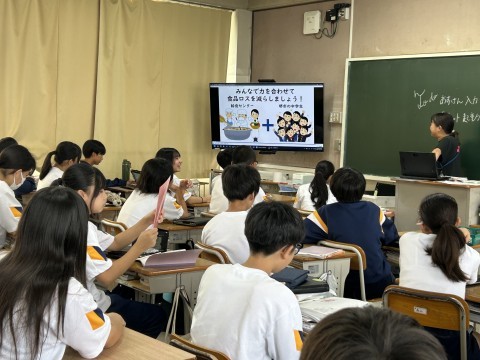 今日は朝学活の時間に「環境にやさしい食事を考えよう」という食育動画で食について学びました。
