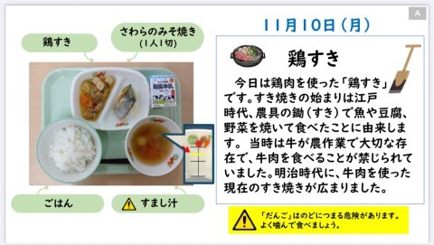 今日はさわらのみそ焼きが苦手で鶏すきでご飯を食べたと言ってる人が多かったです。