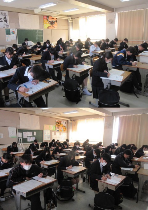 3年生の2日めは、社会、英語、保健体育に取組んでいます。