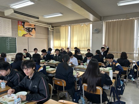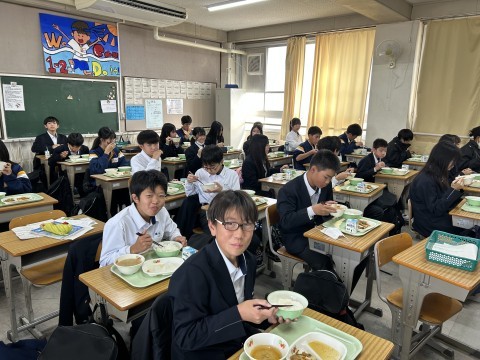 今日は2年生は期末テストのため給食がなかったのですが1年生、3年生は久しぶりの給食を楽しんでいました。