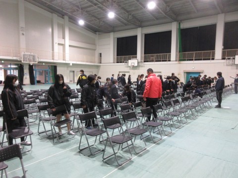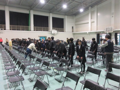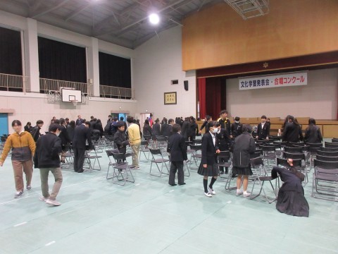 部活動生の協力で、明日の文化学習発表会の会場準備をしています。