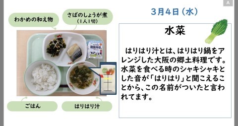たまにしか出ない水菜のはりはり汁も「美味しかった!」と言う感想が多かったです。