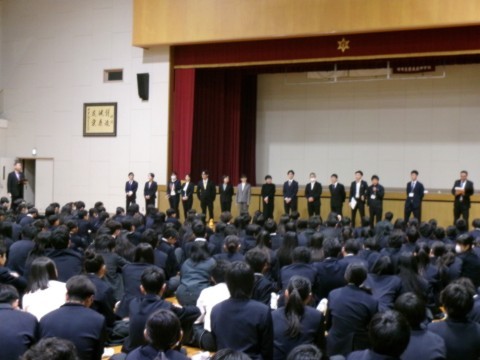 修了式のあと、今月末をもって離任する職員の紹介を行いました。