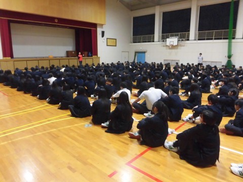 3年生は体育館で学年集会。先生のお話と、2年生のクラスから3年生のクラスに並びなおして、いろいろなものの整理等も行っていました。