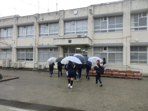 雨の中の登校時間となりました。