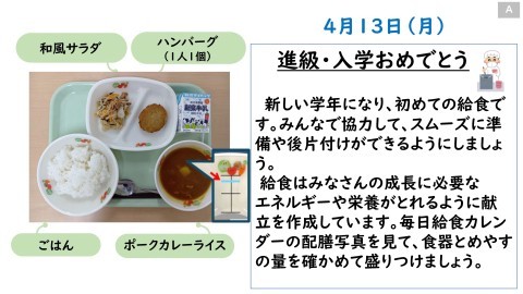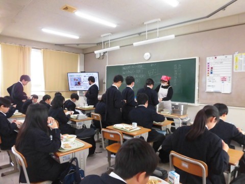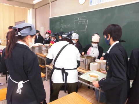 1年生は中学生になって初めての給食でしたが、配膳も頑張っていました。