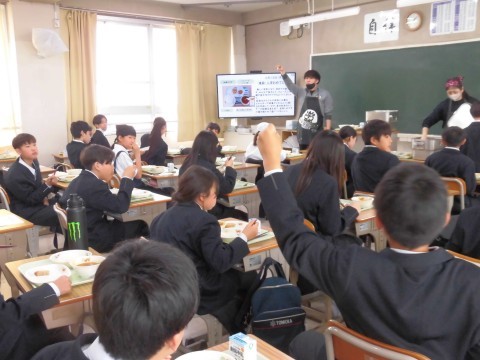 余っているハンバーグや牛乳をめぐっておかわりジャンケンをしているクラスもあり