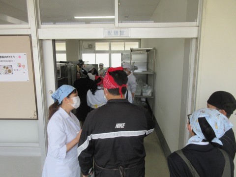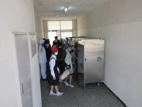 新クラスで、配膳室に料理と食器を取りに来ていました。