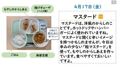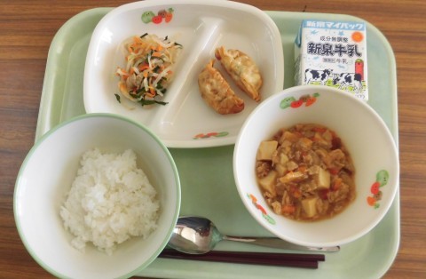 ☆ごはん・麻婆豆腐・揚げギョーザ・もやしのからしあえ・牛乳 でした。