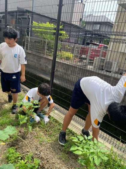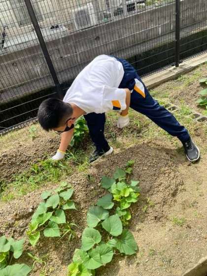 つばさ農園の野菜たちが成長し、とても立派に育っています!暑いですが、みんなで草抜き、水やりを頑張りました。