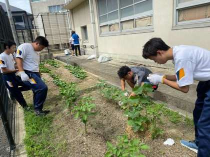 今日も農園の草抜きと水やりを行いました。
