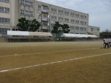 午後からクラブ生徒を中心に明日の体育大会の準備を行いました。石拾いからライン引き、テントの設営などを先生の指示のもと手際よく準備することができました。明日の天候が少し気になりますが、みなさんの頑張りできっと大丈夫だと思います!!