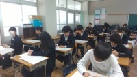 3年生は,全国学力学習状況調査がありました。今日は,国語と数学の学力調査です。1,2年生で学習した内容が出題されていましたが,みんな一生懸命取り組んでいます。写真は3年1組の数学の時間の様子です。