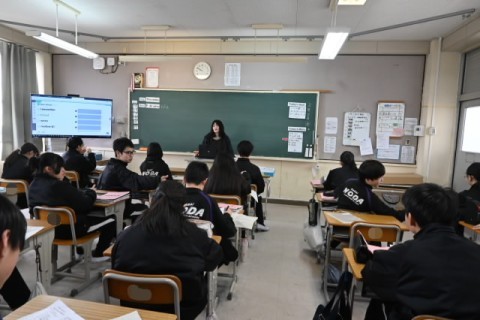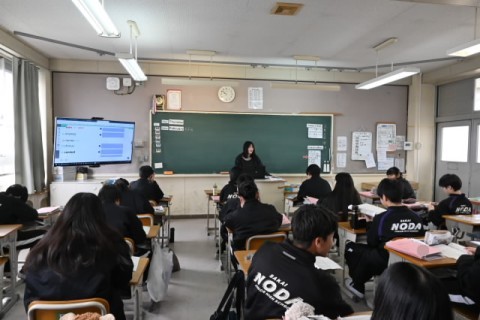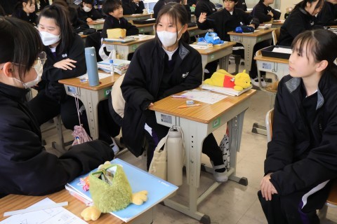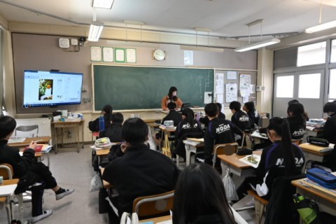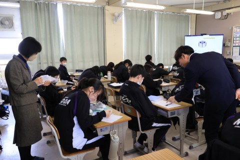 一人一台端末を活用し,遠方の方と英語を用いてコミュニケーションを取っていました。事前に質問や答えなどを考えていましたが,実際にはアドリブなどもあったようです。何とか返答しようと一生懸命取り組んでいる生徒がたくさんいた,と見に来られた教育委員会の方も仰っていました。すごいね。