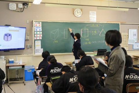 • 1年3組 数学「空間図形:線や面を動かしてできる立体について考えよう」