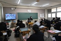 数学の授業です。グループで教えあうなどして課題に取り組んでいました。分からないことは悪いことではなく、分からないまま放っておくほうが良くありません。誰でも良いので、聞ける人に聞いてみるなどして、疑問や不安を減らしてほしいです。そして、次に何ができるようになるのかを大切に、学びに取り組んでほしいです。