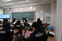 女子の体育の授業です。体育館で各々協議を練習しています。