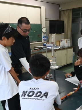 物質を加熱してその変化を記録するという実験を,班のメンバーが協力しながら取り組んでいました。しっかりと記録を取るなど,実験の基本を押さえた取組をしていました。