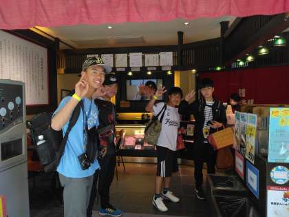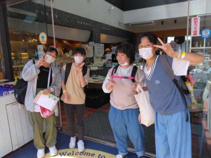 大浦天主堂付近でおみやげを買っている班に出会いました。昨日の夕飯で食べた角煮まんじゅうを買って今から食べるようです。