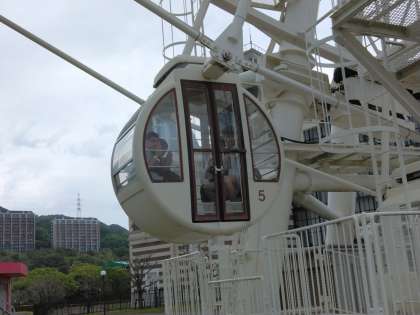 広いハウステンボスでは、なかなか生徒に出会いません。やっと出会った11班は仲良く観覧車に乗りました。