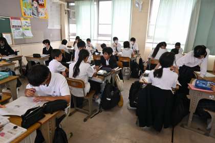 生物分野(植物)を学んでいます。今回は、グループで学びの振り返りをまとめています。ICTなどを活用しながら、知っていることが使えることになっていくよう、主体的に学んでほしいです。