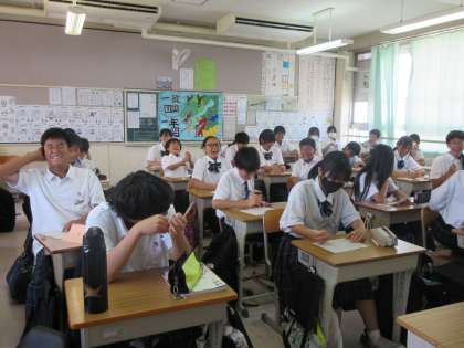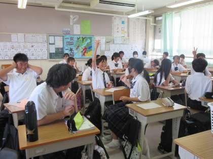 今日は文法の学習をしました。今までに習った文節・単語について,大きな声を出しながら復習しています。全問正解できて喜んでいる生徒もいます。