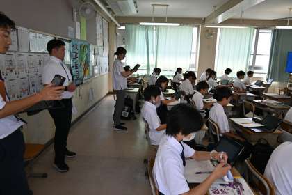 この時間は、堺市教育委員会の教育センターから、ICT活用についてのアドバイスをくださる方が来られていました。