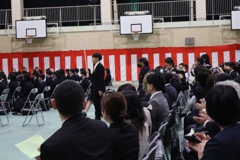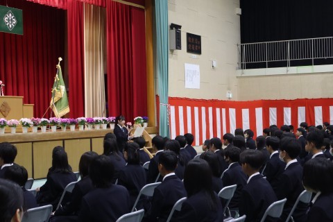生徒たちは、各クラスの担任から呼名され、一人ひとり証書を受け取りました。どの生徒も、格好よく受け取っていました。