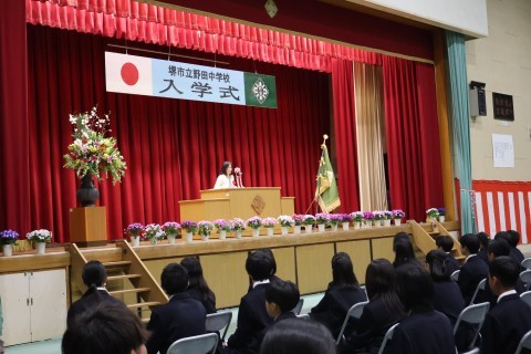 「PTA会長祝辞」「新入生 代表のことば」「在校生 歓迎のことば」の様子です。
