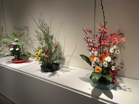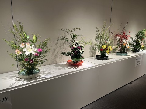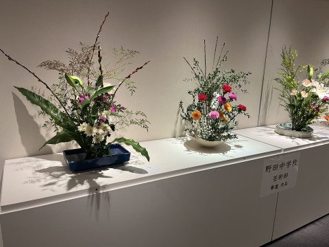 本日から開催されている「ひがしふれあい文化祭」にて、本校芸術部の華道作品が展示されています。