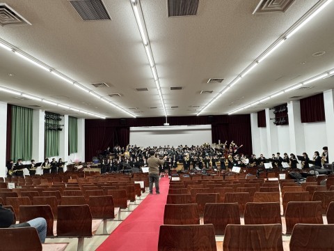 東区中学生吹奏楽フェスティバルの練習で、大阪立命館中学校にきています。野田中学校、登美丘中学校、大阪立命館中学校・高等学校の3校による合同演奏会です。