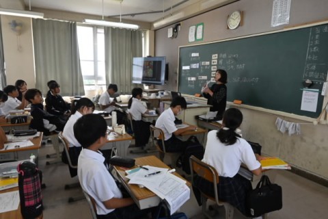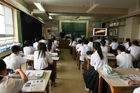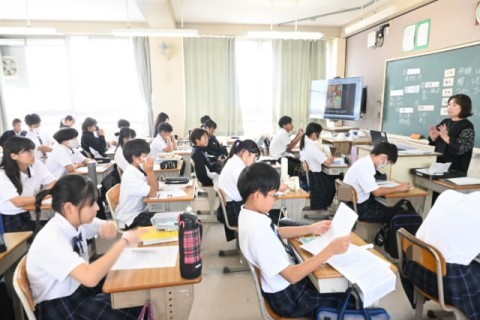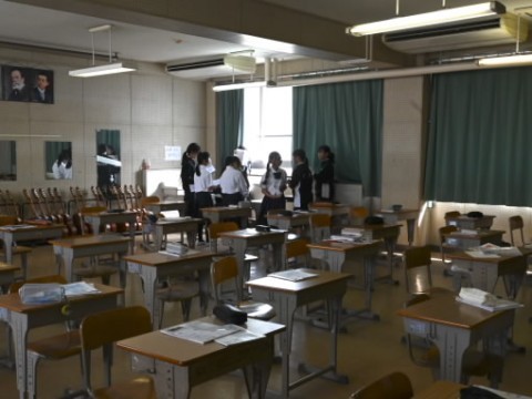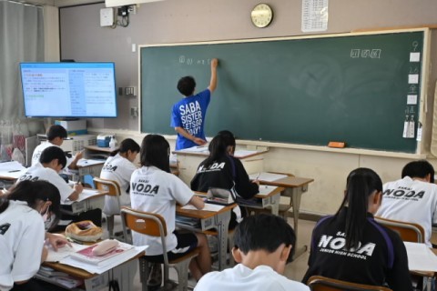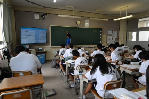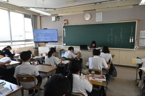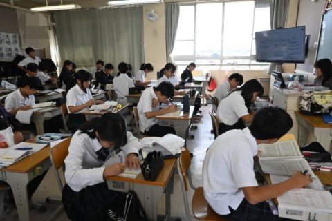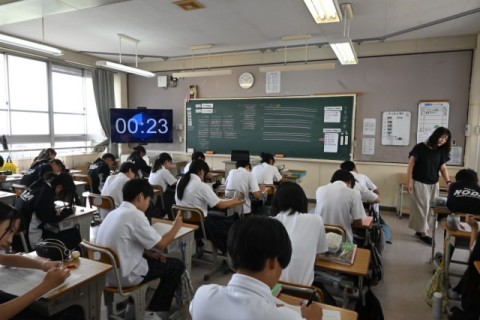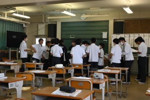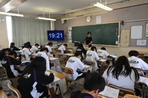 この時は,分割の授業を行っていたのですが,学習室の授業を見る時間がなく,写真がありません。教室のクラスは,中間テストに向けた問題練習をしていました。