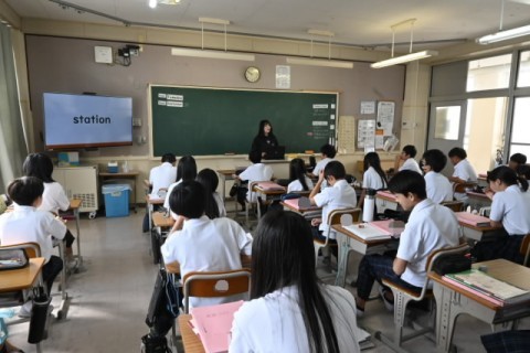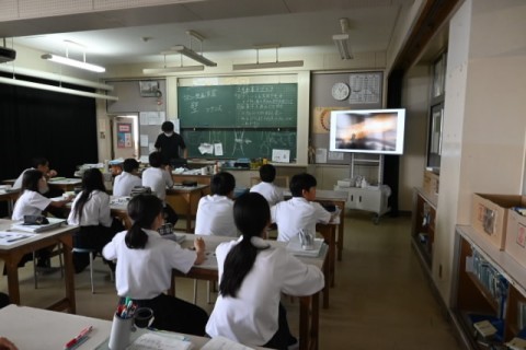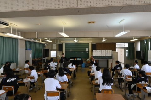 この時は,授業の最初のパートでウォーミングアップの取組をしていました。みんな,しっかりと取り組んでいた姿が印象的でした。