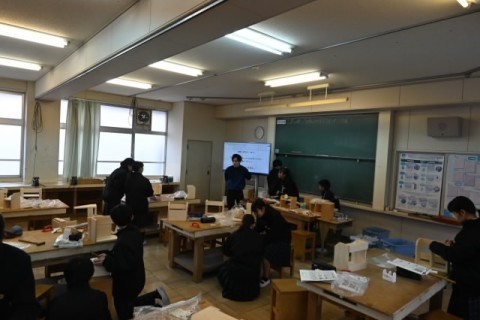 この時は,技術室で実習を行っていました。既に作品が完成した生徒もいて,自慢の出来を披露してくれました。