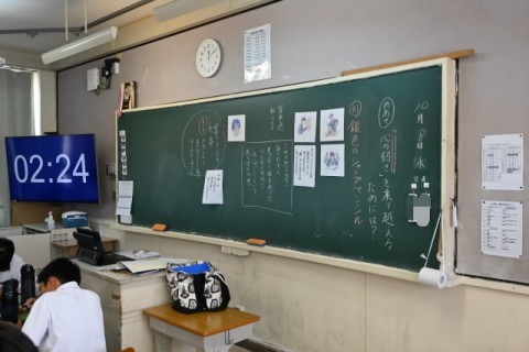 この時は、「節度」について考えていました。もともと言葉が難しいのですが、よく考えて答えている生徒がいました。